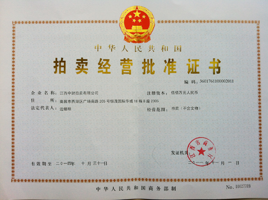 乐鱼网页版登录入口讯 乐鱼网页版登录入口金融广角(南昌)于2011年11月2日喜获江西省商务厅颁发的《拍卖经营批准证书》,营业执照等相关证照已在上报办理中。
