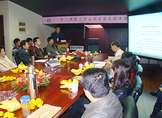 本次会议由管理部负责组织实施,财务总监张总主持。首先,由于总带领全体员工对浙中董局字第130号文件关于下发《边总考察我广角的指示要点》的通知做统一学习,提示继续努力保持好广角业务的流动性。后由广角五虎将分别将其部门第三季度的经营情况、业务拓展情况、团队管理培训情况及第四季度工作计划等做系统总结及ppt展示。