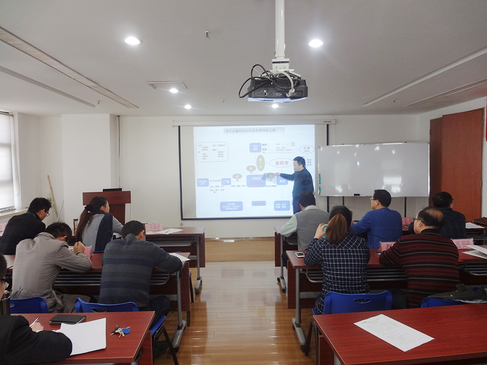 下午议程为沟通与交流,集团项目金融处楼裕苗处长、刘翎科长以及客户开发中心方李斌就《业务管理图》以及《营销事业图》与广角员工进行了交流分享。