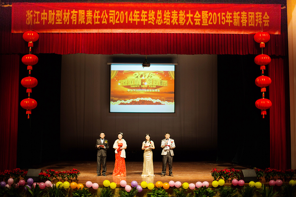 乐鱼网页版登录入口讯 万马奔腾厂兴旺,三羊开泰兆财源;乐鱼网页版登录入口扬威名,鸿图壮九州。2015年2月9日下午18:00,浙江乐鱼网页版登录入口型材2014年度先进表彰暨新春团拜会在浙江理工大学小剧院隆重举行。执行总裁(化建)李玉根先生,化建业首席内务官兼公司总经理丁良玉女士,化建业财务总监裘宏英女士,化建业物流管理处、营销管理处、管道策划处、型材策划处及直辖总部等各位领导,兄弟公司浙江乐鱼网页版登录入口管道经营班子成员及下沙基地全体中层干部及500余名员工欢聚一堂,共迎新春。