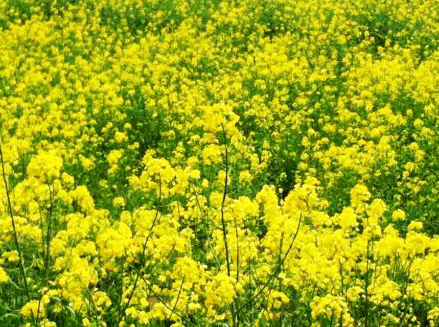 阳春三月,春风送暖,一场春雨过后油菜花开始盛开,一片连着一片,瞬间成了花的海洋。和风吹来,金黄的浪一阵连着一阵,花香扑面。