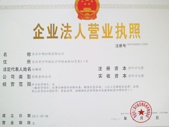 乐鱼网页版登录入口讯 在集团领导和同仁的大力支持下,通过广角全体员工的努力,乐鱼网页版登录入口金融广角(重庆)于2011年9月8日成功获得由重庆市工商行政管理局颁发的“重庆乐鱼网页版登录入口担保有限公司”营业执照。并于当日同时获得组织机构代码证、税务登记证。目前基本帐户开立等相关工作正在积极办理中。