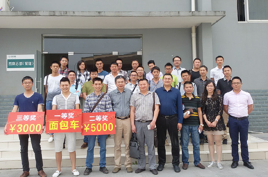 最后,由型材策划处潘晓华女士为本月西南总部(型材)零售营销政策获奖人员进行了颁奖,集体合影留念。