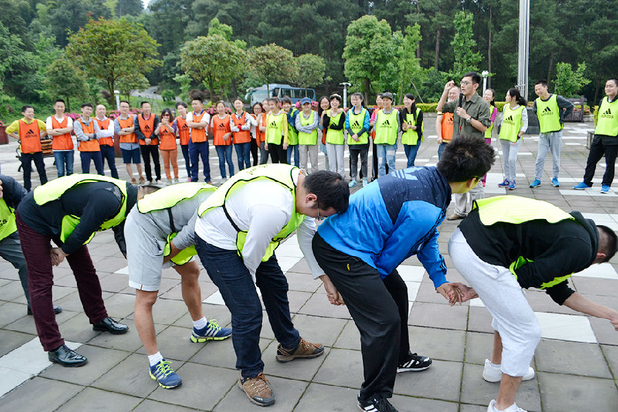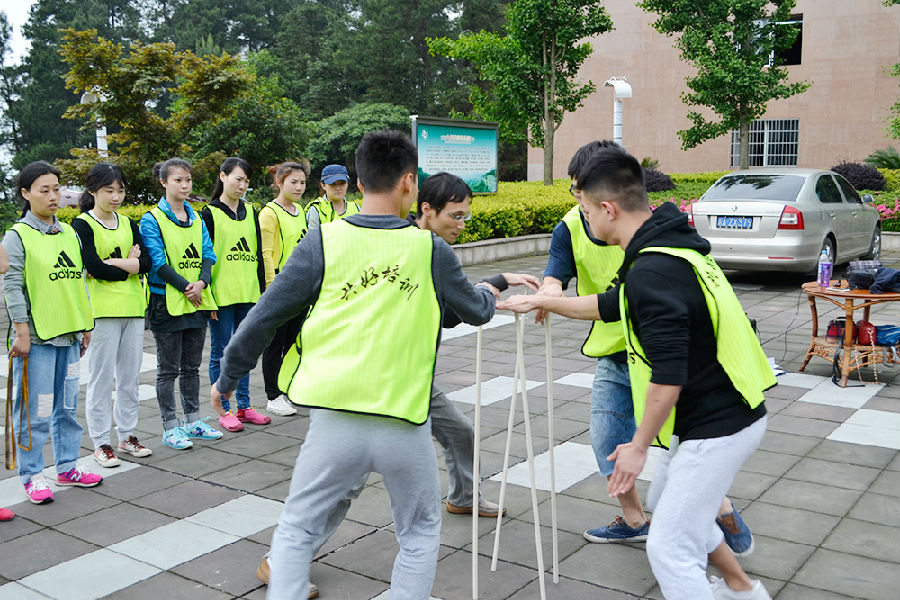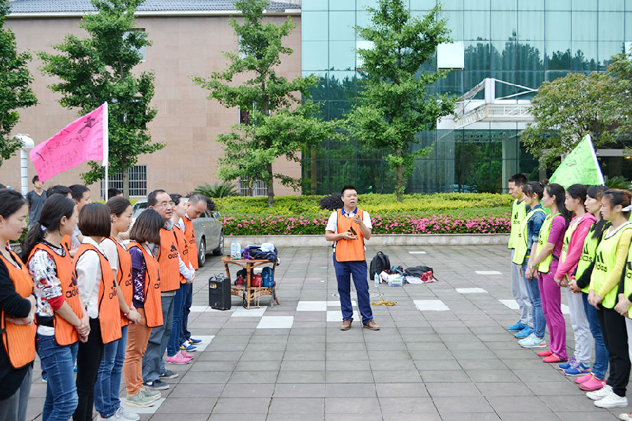 下午13:30,开始了本次活动最激情最有难度的项目:挑战100秒。每个团队在100秒内顺利完成报数、摸杆、传球、传毛巾、钻圈、大团结六个项目。