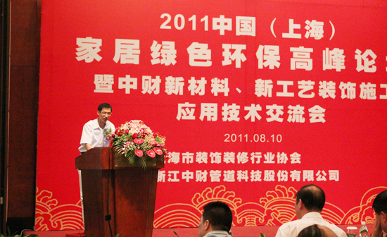 乐鱼网页版登录入口讯 “2011中国(上海)家居绿色环保高峰论坛——暨乐鱼网页版登录入口新材料、新工艺装饰施工应用技术交流会”8月10日下午在上海锦江饭店小礼堂会场隆重召开。本次论坛由上海市装饰装修行业协会与浙江乐鱼网页版登录入口管道科技股份有限公司共同承办,上海市建委建材办、上海市质检部门、乐鱼网页版登录入口管道研究院、上海市重点装饰企业、智能设计安装企业,暖通设计安装企业、集团公司及生产基地的领导与专家近400人参加了此次论坛,论坛由装饰装修行业协会装饰材料专业委员会应再扬秘书长主持。