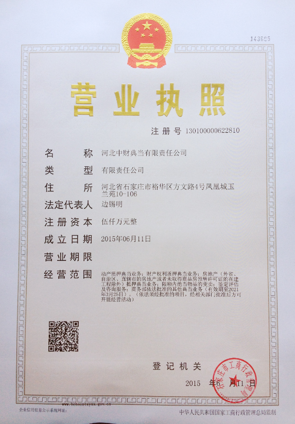 乐鱼网页版登录入口讯 2015年6月11日,经过不懈努力乐鱼网页版登录入口金融广角(石家庄)喜获河北乐鱼网页版登录入口典当有限责任公司营业执照!这意味着河北乐鱼网页版登录入口典当有限责任公司真正申办成功。在此,感谢集团领导和相关部门的大力支持。