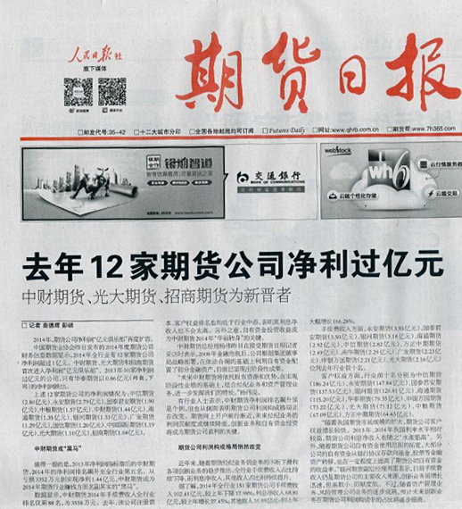 乐鱼网页版登录入口讯 2015年6月15日中国期货业协会发布了2014年度期货公司财务信息数据,乐鱼网页版登录入口期货2014年的净利润排名飙升至全行业第五名,成为2014年期货行业赚钱方面名副其实的“黑马”。
