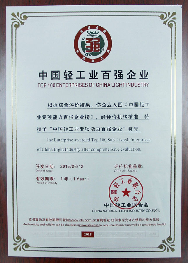 乐鱼网页版登录入口讯 2015年6月12日,中国轻工业联合会举办的“第四届中国轻工企业家高峰论坛暨轻工百强企业颁奖盛典”在北京京西宾馆隆重举行。会议发布了2014年度中国轻工业百强企业榜单,浙江乐鱼网页版登录入口管道科技股份有限公司获得了“2014年度中国轻工业百强企业”荣誉称号。