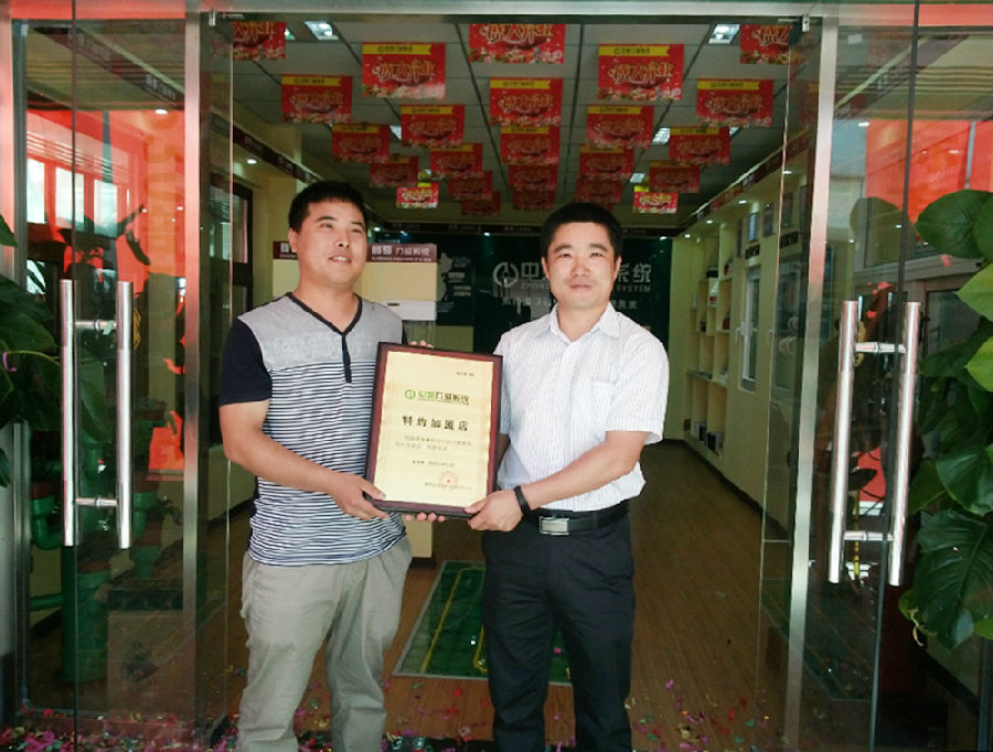 天津总部首席执行官刘芳兴先生(右)为该形象店投资人王家华(左)授权