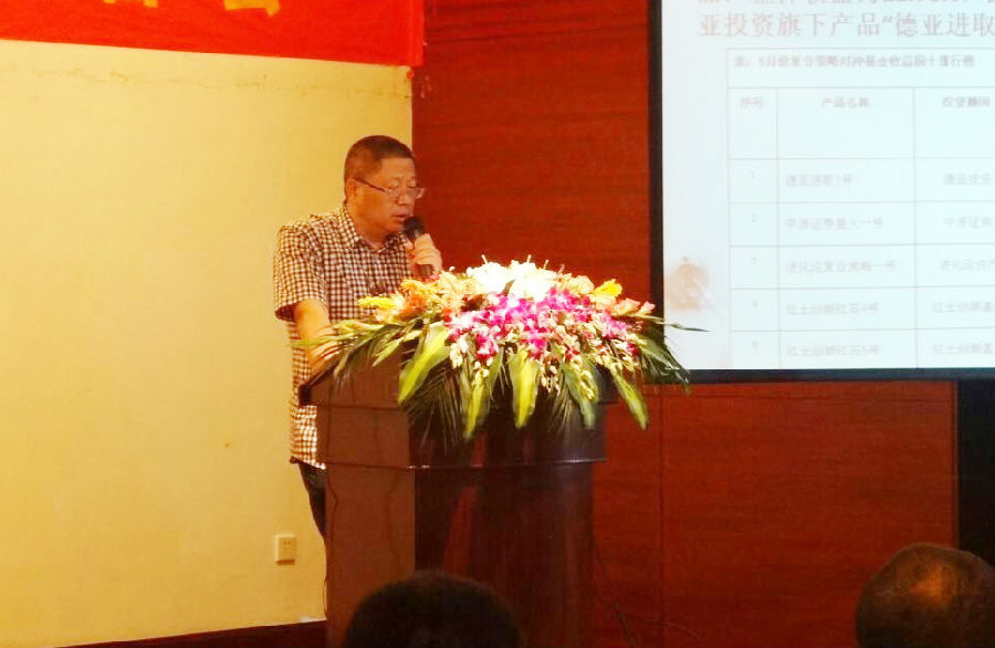 接着,德亚投资总裁张明利向大家介绍了德亚投资团队、投资理念、风险控制、历史业绩以及即将发行的基金产品,并就现场嘉宾关注的几个问题:怎么看待长期投资、怎么选择投资顾问、如何看待和防范投资风险等作出详细地讲解。最后会议进入互动环节,现场参会嘉宾踊跃提问,张总现场解答了参会者的问题。
