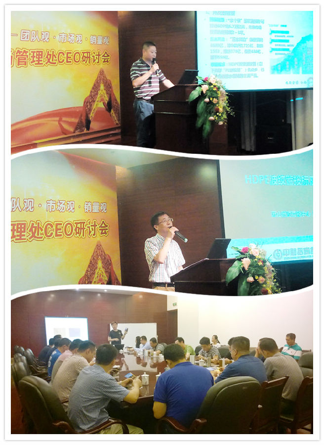 为使研讨内容更有针对性,更贴近管理处CEO实际工作,二季度研讨会对以往研讨形式作了调整,以年销售任务3000万元为基准点,以“团队观、市场观、销量观”为主题,分两期展开研讨。在会务方面,为了更有利于团队荣誉感的打造与新产品推广,本次研讨会布置了销量光荣榜与型材、管道新产品展示区。