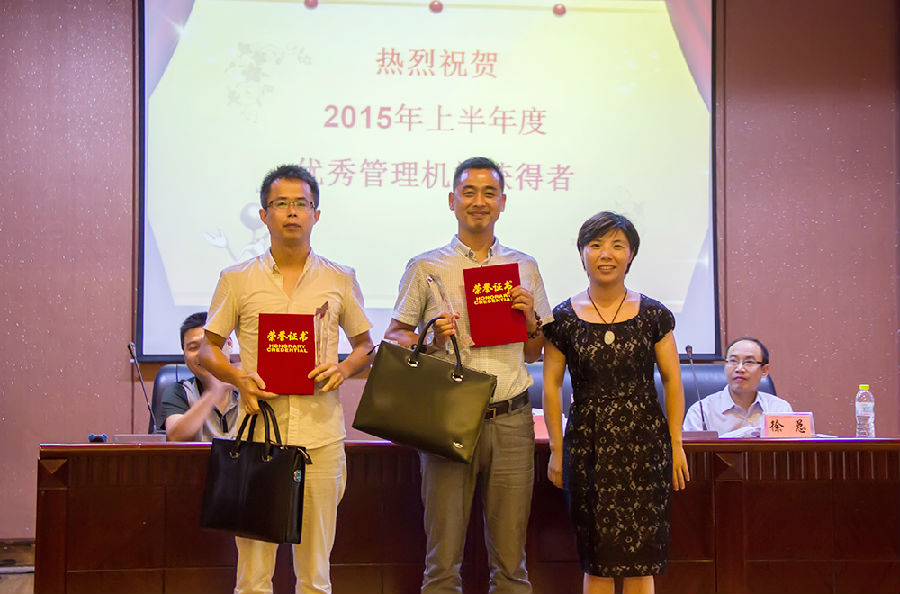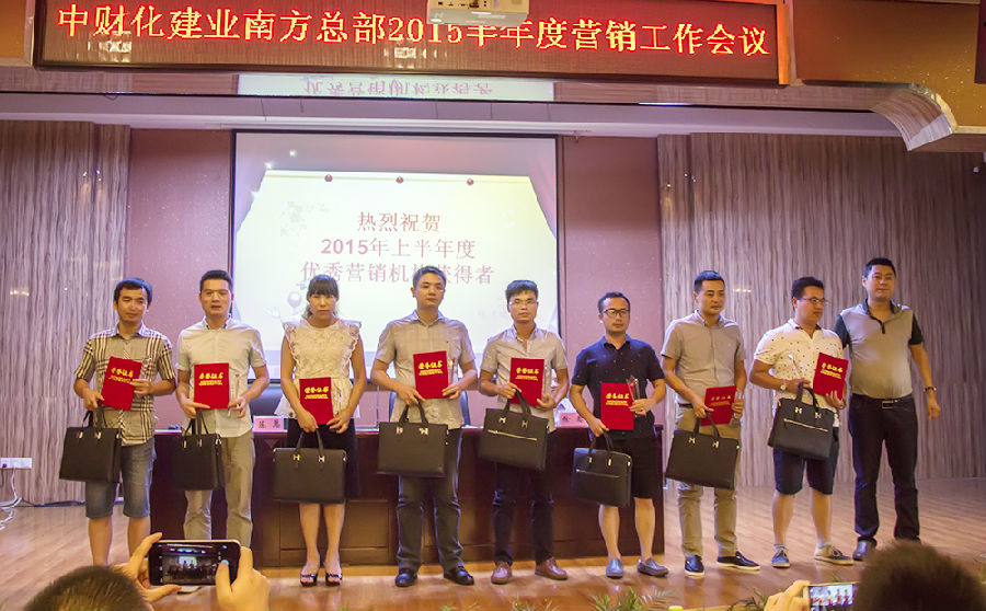 随后,化建业首席内务官丁良玉女士、南方总部首席执行官陈明先生、湖南基地领导徐永辉先生,分别为优秀管理机构、优秀营销机构、优秀新人获奖者颁奖。全体与会人员还就市场问题和营销政策作了沟通和交流。会议接近尾声,丁总、陈总分别代表化建业领导班子、总部作了总结陈辞。