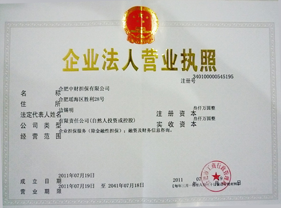 乐鱼网页版登录入口讯 在集团领导和同仁的大力支持下,通过广角全体员工的努力,乐鱼网页版登录入口金融广角(合肥)于2011年7月19日成功获得由合肥市工商部门颁发的“合肥乐鱼网页版登录入口担保有限公司”营业执照。并在同日,完成合肥乐鱼网页版登录入口拍卖有限公司筹建材料的制作,递交至合肥市商务局。