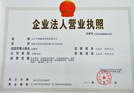 乐鱼网页版登录入口讯 在集团公司领导及相关部门的全力支持和协助下,继获得融资性担保经营许可证后,辽宁乐鱼网页版登录入口融资担保有限公司于5月6日又顺利拿到了工商营业执照。后续相关手续正在加紧办理之中。