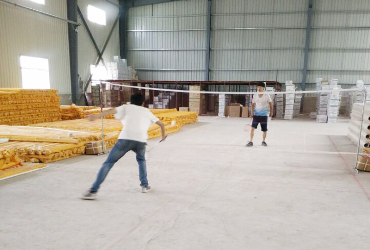上午11点,羽毛球比赛在仓库中展开,经过激烈的淘汰赛,研发部汪鑫同志和供采部张洁同志分别获得羽毛球男、女冠军。