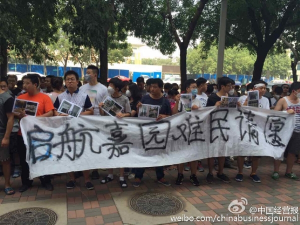 8月16日,天津港爆炸事故周边居民请愿要求政府回购受损房屋。
