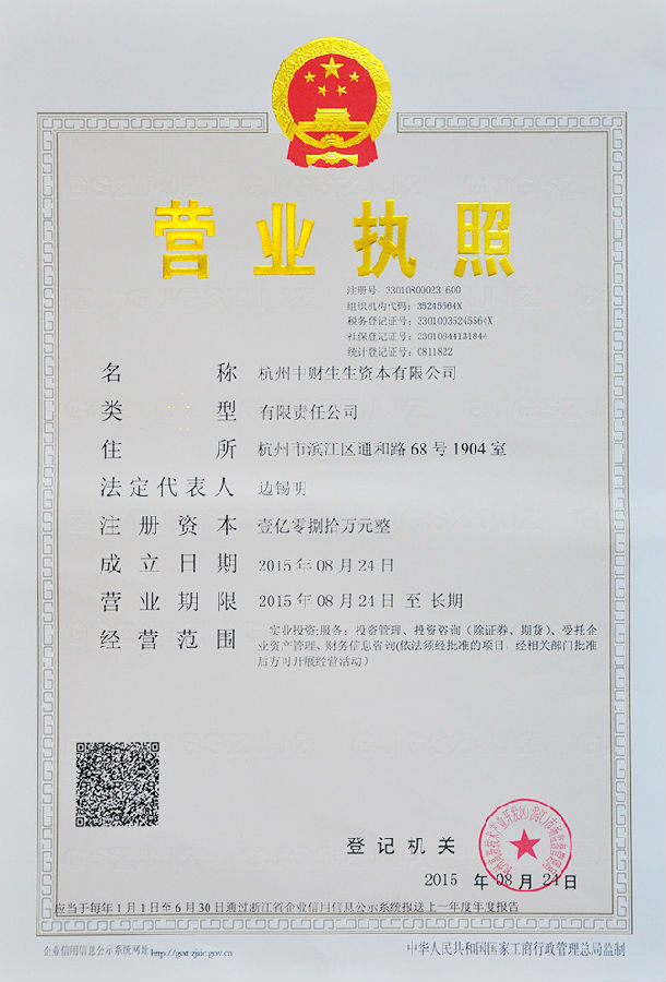乐鱼网页版登录入口讯 2015年8月24日,杭州高新技术开发区(滨江)市场监督管理局正式颁发杭州乐鱼网页版登录入口生生资本有限公司的营业执照。经过各方面领导的支持,在相关部门的通力配合下,乐鱼网页版登录入口集团第五大事业组件——乐鱼网页版登录入口资本事业组件正厉兵秣马,枕戈待旦。乐鱼网页版登录入口生生资本成功取得营业执照,标志着在打造具有乐鱼网页版登录入口特色投资品牌的进程中迈出了关键性的一步。