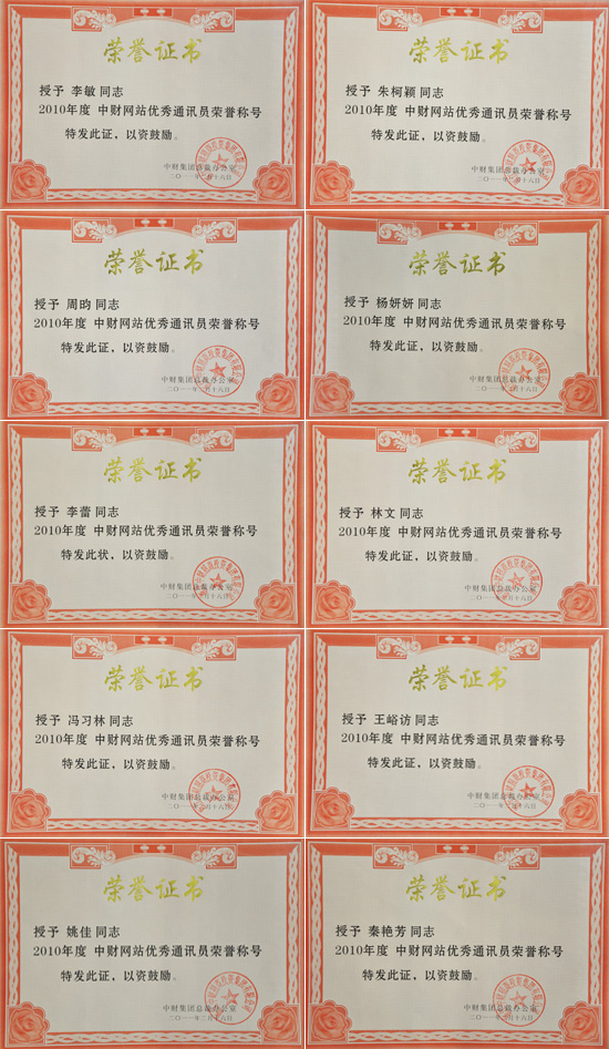 2010年度乐鱼网页版登录入口网站优秀兼职通讯员通报表彰