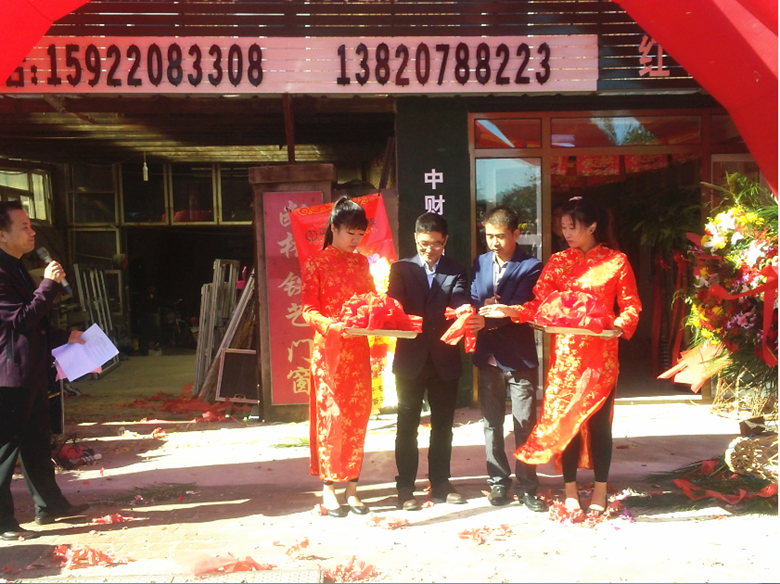 开业当天,店内外人头攒动,形象店邀请了公司领导和当地门窗店等客户前来体验全新亮相的形象店。剪彩仪式烘托出现场热闹的氛围。