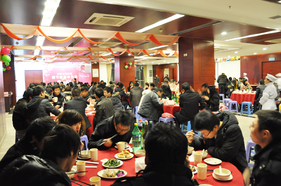 晚上6点,在乐鱼网页版登录入口总部3楼食堂举行的员工聚餐,大家更像是重逢的老朋友,开怀畅饮,互道祝福。其间,还对由公众投票产生的文艺表演一、二、三等奖进行了颁奖仪式。