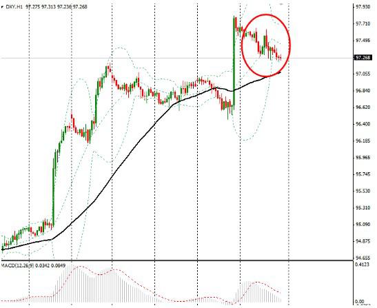 美元指数自两个半月高位震荡回落,受美国经济增长数据放缓打压。美联储决议暗示12月升息后,市场的焦点重现转向美国经济数据的表现上,周四美国公布的经济数据整体不及预期,尤其是市场最为关注的美国GDP数据表现不佳,这施压美元走软。