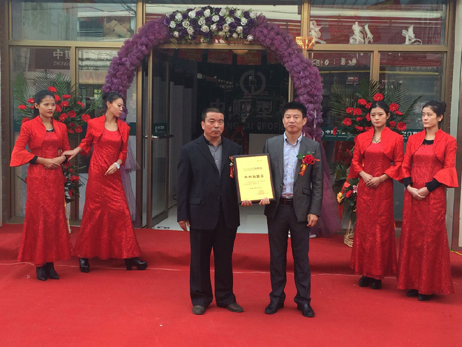 乐鱼网页版登录入口化建业北方总部首席执行官钱海军先生(右)为形象店投资人张富军先生(左)授牌