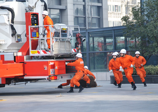 上午10时,2011年新年伊始的杭州市高层建筑灭火逃生演习顺利结束。