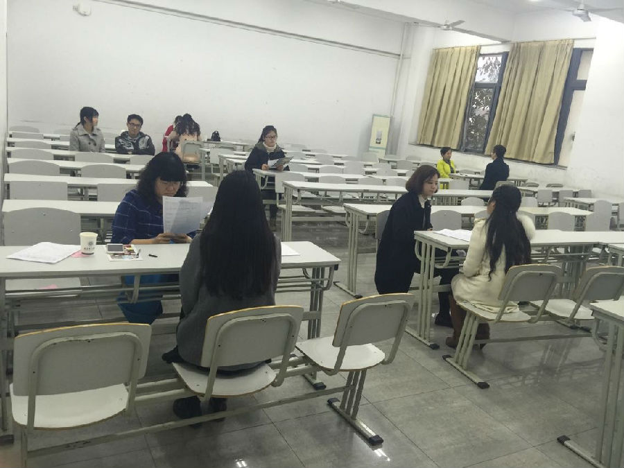 同学们正在进行分组面谈