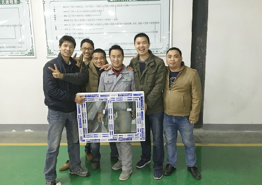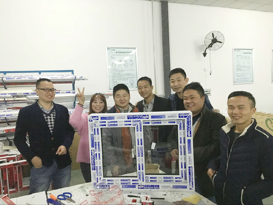 2日上午,汪斌老师讲授了什么是好门窗并带领22名学员实地参观了生产基地和门窗研究所。晚上,学员们分成四个小组亲自制作了样窗,接触到每一个环节,对好门窗有了直观体会。