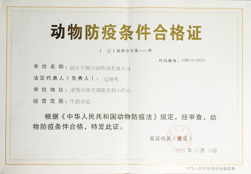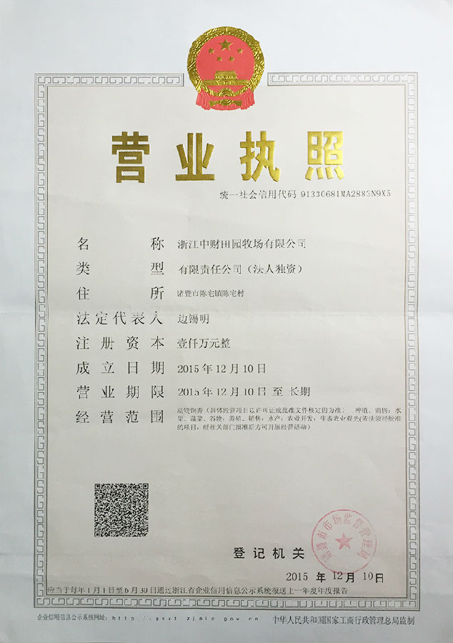 乐鱼网页版登录入口讯 在集团领导大力支持和各方同事的共同努力下,2015年12月10日,诸暨市工商局正式颁发浙江乐鱼网页版登录入口田园牧场有限公司营业执照,并成功收购了诸暨市诸潴蓄禽养殖场,《动物防疫条件合格证》的变更工作也已于12月18日完成。