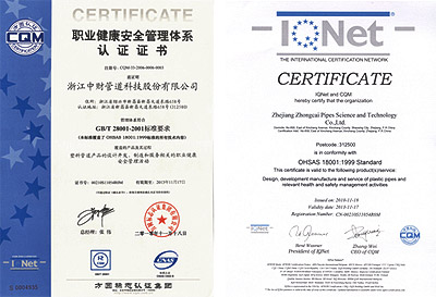 乐鱼网页版登录入口讯 浙江乐鱼网页版登录入口管道通过3个多月的资料准备及现场改善,11月5日顺利通过方圆认证中心对公司现场职业健康安全管理体系审核,并于11月19日获得证书。