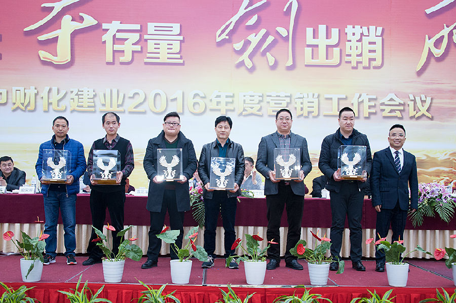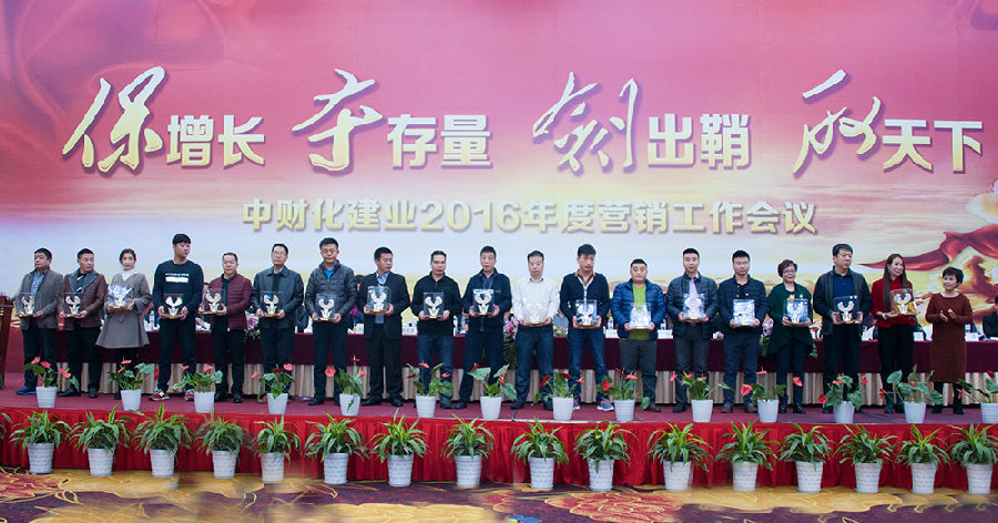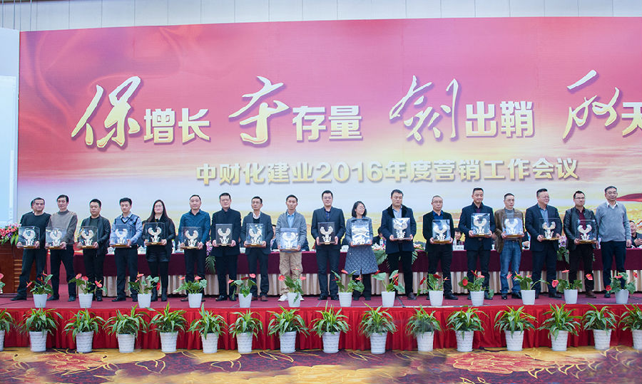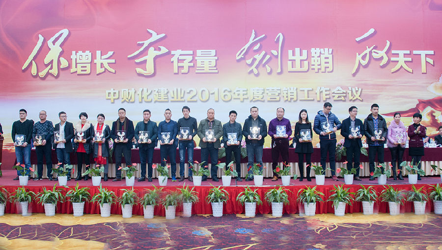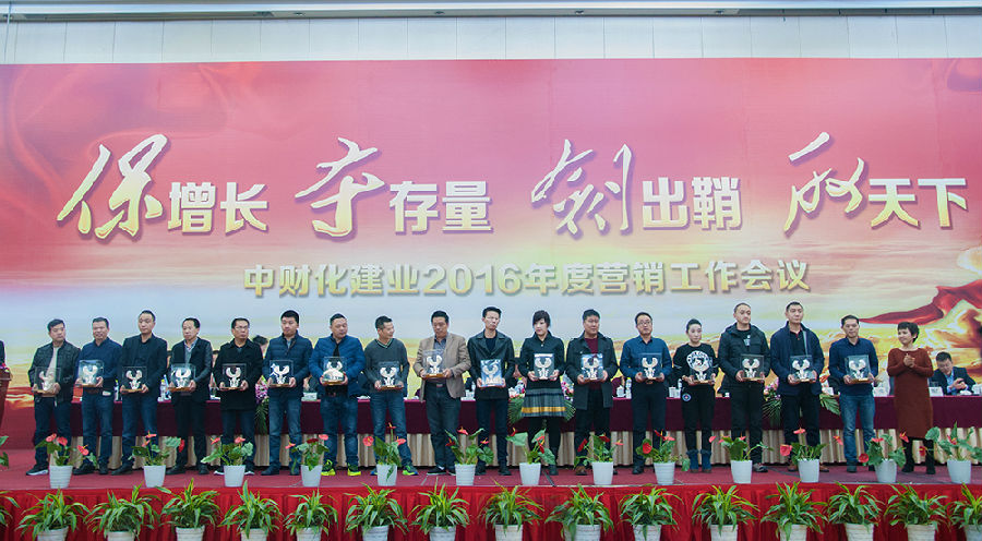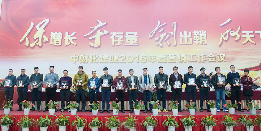 俞总首先向大家表达了衷心的问候,并对化建业2016年度营销大会的组织、策划工作表示肯定,要求广大营销将士向上台领奖的优秀机构代表们学习。俞总指出,在我们获奖的优秀营销机构代表中,既有豪杰、又有英雄,我们当中的一些优秀机构,能抓住市场的机会,成为豪杰;但有些则是在逆境中做出成绩的英雄,他们在市场环境一般甚至恶劣的情况下能够做起来,这当中肯定有很多内涵,有很多东西值得我们深度挖掘和学习。此外,化建业还有很多大户,他们今年的增量也非常不错,他们也有很多值得我们学习和吸收的东西。但我们也有一些机构在2015年情况较为困难的情况下,自我放弃,这些机构都曾经做得比较好,但遇到环境变化时,销量快速下滑,这是很可惜的,这些机构要放下包袱,客观面对现实,不要被市场的困难打倒,一步一步重新发展起来。