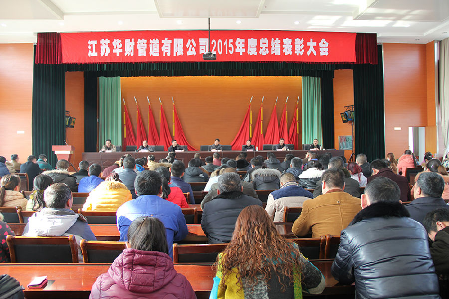 乐鱼网页版登录入口讯 江苏华财管道2015年度工作总结表彰大会于1月15日下午14时在滨海县东坎镇政府二楼大会议室隆重举行,滨海县浙商商会会长陈士龙、滨海县浙商商会秘书长刘义超、东坎镇镇长李章保、东坎镇党委副书记徐军、公司总经理潘永铭、总经理助理金秋生、营销部经理程飞及全体员工参加了本次总结表彰大会。大会由总经理助理金秋生主持。