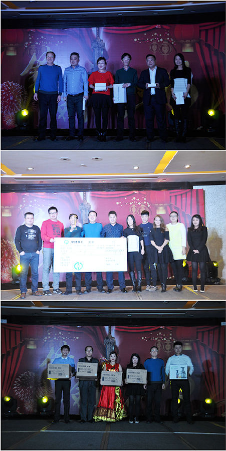 优秀的团队离不开业务人员及后台人员的默默付出,晚会期间设立了颁奖、抽奖两个环节。颁奖环节分别颁发了优秀员工、客户数前三名、业绩前三名、部门任务达标奖及优秀学员五个奖项。由张总为五个奖项获得者进行表彰与鼓励,每一名获奖的同事都掩盖不住内心的激动与高兴。我们坚信,在未来的道路上,他们能铸造利剑,冲向巅峰!