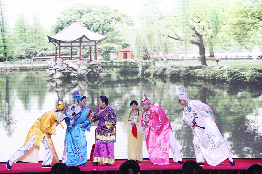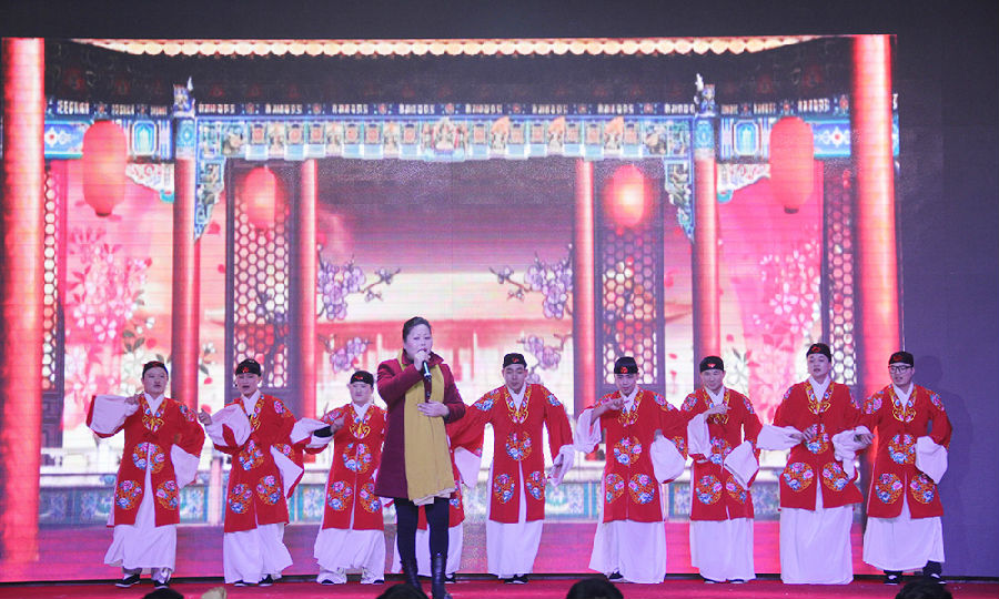整场团拜会节目内容由舞蹈、歌曲、小品、相声、戏曲、话剧、乐器表演等多种形式组成,丰富多彩。传统戏曲节目越剧《手心手背都是肉》、调腔《白蛇传选段(下金山)》,演员的专业唱功令人赞不绝口,赢得了场下阵阵掌声。