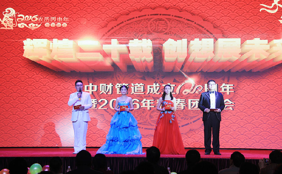 乐鱼网页版登录入口讯 羊歌盛世展喜相,猴舞新春又呈祥。2016年1月28日晚,乐鱼网页版登录入口管道成立二十周年暨2016年新春团拜会在新昌县万丰广场大酒店隆重举行。乐鱼网页版登录入口集团执行总裁(化建)李玉根先生,副总裁兼化建首席市场官陈冠军先生,总裁助理兼化建业首席内务官丁良玉女士,集团首席财务官特别助理裘宏英女士,总裁助理兼浙江乐鱼网页版登录入口管道衍生产品有限公司总裁俞仲达先生,直辖总部的营销将官以及营销管理处、管道产品研究处和下沙基地等领导,与800余名员工及家属欢聚一堂,辞旧迎新,共迎新春。