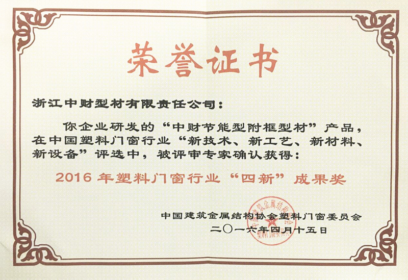 乐鱼网页版登录入口节能型附框型材产品获2016年塑料门窗行业“四新”成果奖