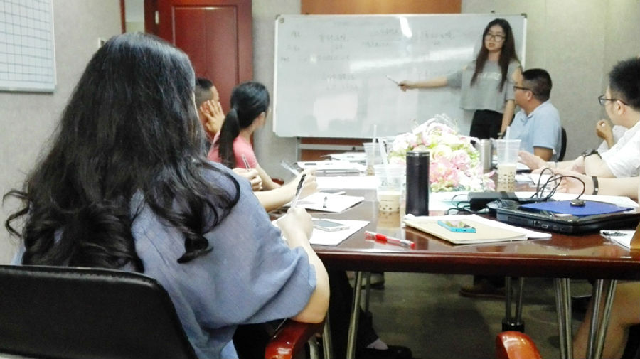 接着,由运营科周科长讲解《业务调查一阶段》,详细清晰地板书了前期业务调查中必须具备的要素,任何要素缺一不可,故再次强调业务人员与客户沟通,要清楚地将公司的业务流程灌输到位,做到笔笔业务遵守“标准、制度、程序”,顺利转化,安全落地。