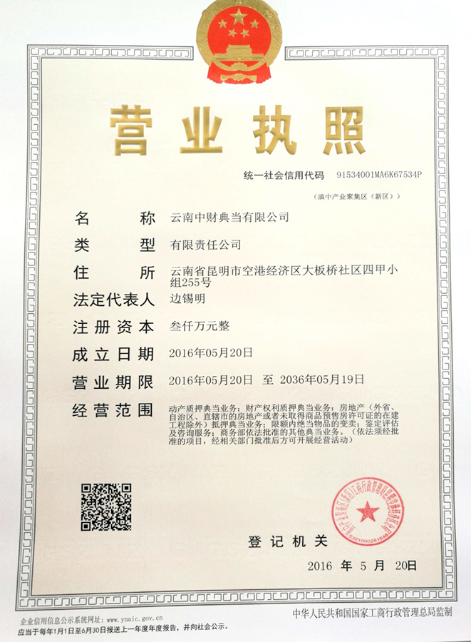 乐鱼网页版登录入口讯 昆明广角于2016年5月20日成功获得由滇中产业聚集区(新区)工商行政管理局昆明空港经济区分局颁发的云南乐鱼网页版登录入口典当有限责任公司营业执照。昆明广角自筹办以来,得到了集团领导的大力支持及各处室的积极配合,经过广角全员的不懈努力,三家公司均申办成功。至此,昆明广角已完成“三位一体”的广角架构,为今后业务拓展奠定坚实的基础。我们将继续强化广角全员的团队意识和内部培训,以饱满的热情完成昆明广角今年工作目标。