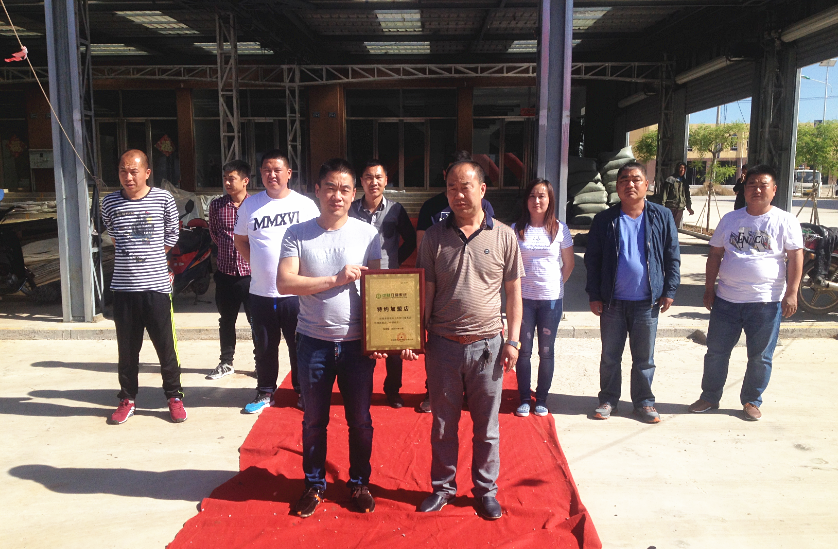 葫芦岛型材代表处徐总(左)为形象店投资人倪总(右)授权