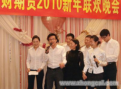 在总经理金总2010年新年贺辞中拉开了晚会的帷幕。驻外机构代表济南营业部总经理吕建国和市场部代表于建芬分别上台发言。