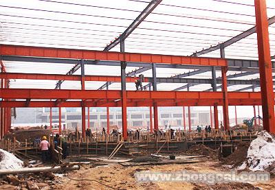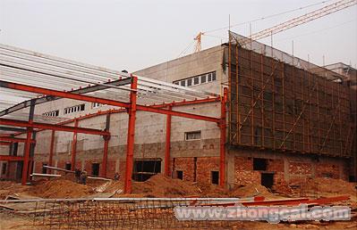 (生产车间主体钢结构已经完成,现在进行屋面封顶和设备沟工程)