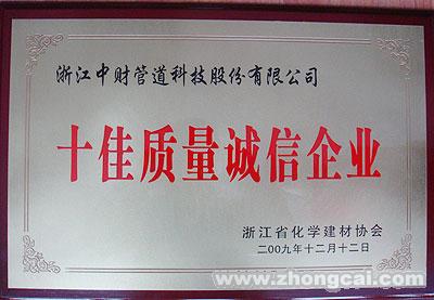 浙江乐鱼网页版登录入口管道被浙江省化学建材协会评为“2009年度十佳质量诚信企业”