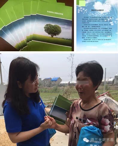 (几天来,老师们和志愿者们在南湾村挨家挨户的走访,为灾民们做心理疏导,带来有声的力量和新生的希望)