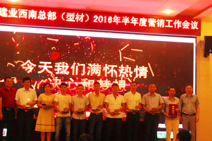 紧接着由部分优秀营销机构分享了他们的市场操作实践经验和发展历程。随后进行最激动人心的颁奖环节,由集团总裁(化建)李玉根先生及西南总部(型材)陈亮先生对上半年的优秀机构进行了表彰并颁奖。