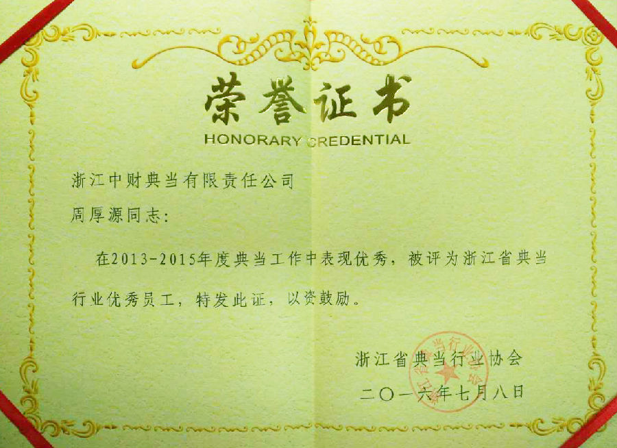 乐鱼网页版登录入口讯 传承历史,拥抱时代;十年相伴,共同成长。在浙江省典当行业协会成立十周年之际,浙江乐鱼网页版登录入口典当有限责任公司当选为“浙江省典当行业专业特色企业”,周厚源同志被评为“浙江省典当行业优秀员工”。