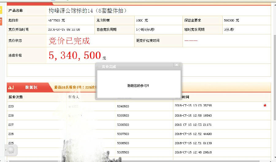 乐鱼网页版登录入口讯 受安徽省合肥市中级人民法院的委托,7月15日上午,合肥乐鱼网页版登录入口拍卖有限公司在合肥市产权交易中心举行司法委托拍卖会。合肥市北一环南构峰源公馆21套房产全部拍卖成交,总成交价1259.11万元,超出起拍价190.9万元,溢价120%,其中8套房产整体拍卖,起拍价467.75万元,经过229轮激烈竞价,最终以534.05万元成交。本次拍卖会前期招商阶段,合肥广角全员营销,拍卖取得良好效果。截止目前,合肥乐鱼网页版登录入口拍卖有限公司今年拍卖总成交价合计2381.64万元。