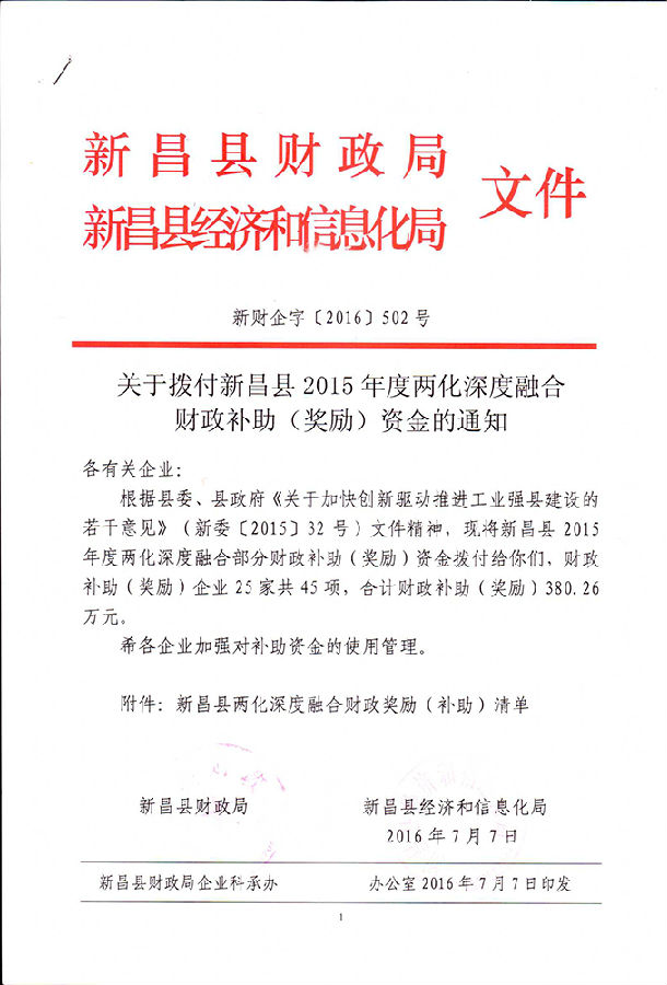 浙江乐鱼网页版登录入口管道作为当地制造业的骨干企业,积极响应两化融合行动计划,致力于打造数字化工厂,推进防窜货系统和机器换人项目,荣获2015年度新昌县两化深度融合财政奖励20万元。这份奖励,是对乐鱼网页版登录入口管道“制造换法”、“管理换脑”深入实践的肯定,更是对我们大力发展信息经济的鼓励。
