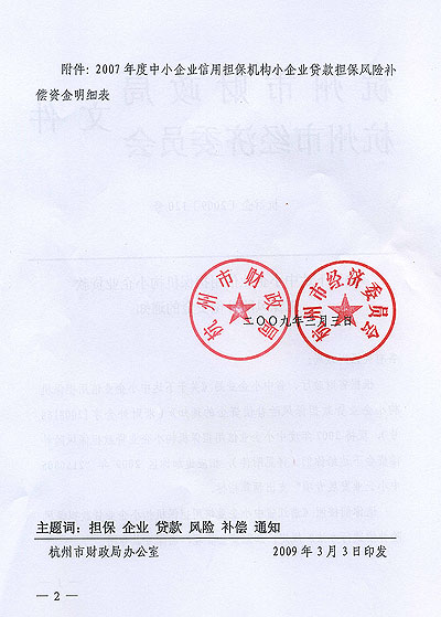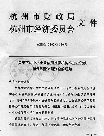 浙江乐鱼网页版登录入口担保获07年度中小企业信用担保机构小企业贷款担保风险补偿资金