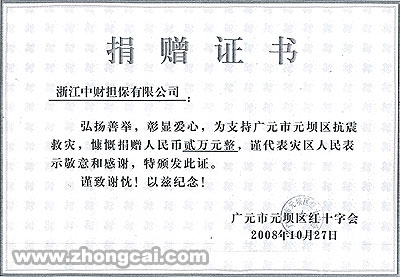 乐鱼网页版登录入口讯 近日,浙江乐鱼网页版登录入口担保有限公司获得由浙江省信用与担保协会颁发的“抗震救灾 众志成城”荣誉奖状。在2008年5月12日四川汶川大地震发生后,浙江乐鱼网页版登录入口担保有限公司全体员工自发捐款贰万元, “一方有难,八方支援”,希望受灾民众早日重建家园。